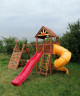 Детский городок Крепость – это доступная и популярная модель с башней, домиком, тремя качелями и большим дополнительным функционалом.